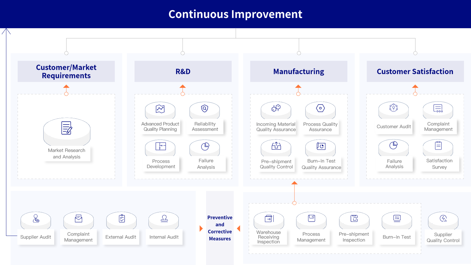 Every employee is indispensable to quality management. The procedures and rules must be followed. Prevention should be put first and continuous enhancement is required.